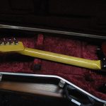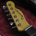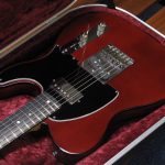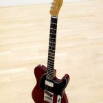 When this guitar was commissioned, the customer was very easy-going and open to suggestions. Broadly speaking, he wanted it to be light, resonant and with good looks. I wanted to use pine for weight and we decided to go for a deep red with black top and back binding to give it some depth and some class! The most unusual feature is the neck though. It is made from a large block of tight grained Sitka spruce, commonly used as bracing stock on acoustic guitars. While this contributes to the light overall weight and resonance, it also has a very pleasing grain orientation which shimmers at certain angles. The pickups are hand wound, and the humbucker was wound on the low side with an Alnico 2 bar magnet, to balance the volume with the bridge pickup. The guitar is extremely resonant and clear sounding in all registers.
