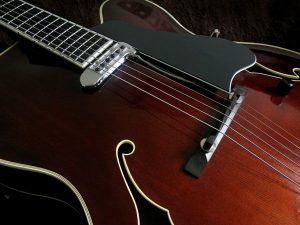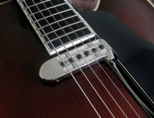 If required, Kent Armstrond mini-humbucker can be installed. The model pictured here has a 1968 DeArmond adjustable Rhythm Chief single coil pickup. A reproduction of this pickup is also optional.